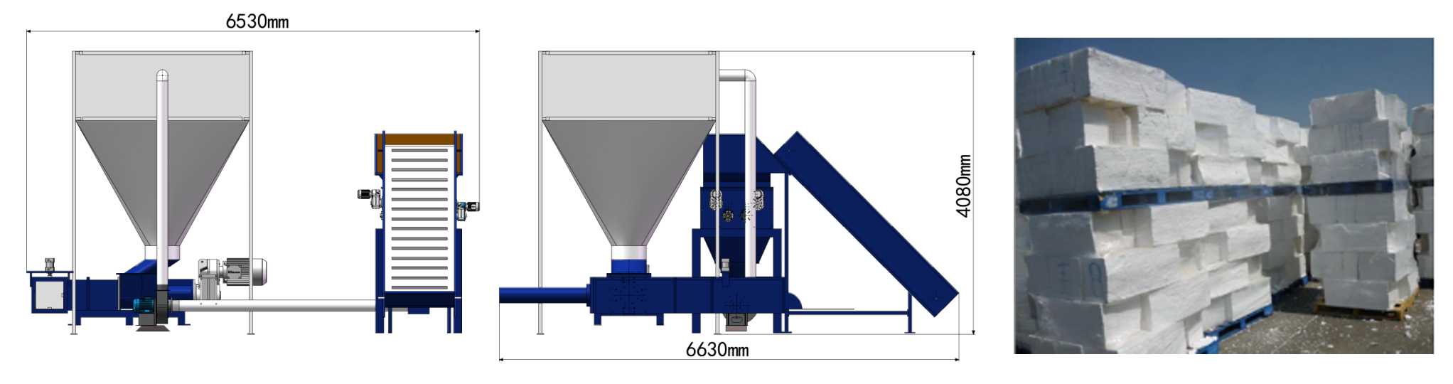 秦風機械只是為了解決這個問題而制造聚苯乙烯泡沫塑料壓實機,它可以減小EPS材料的尺寸,壓縮比可以達到1:30-1:50。成品為EPS塊,密度可以達到300kg / m3 客戶很容易將EPS物料輸送到另一個回收處理單元。